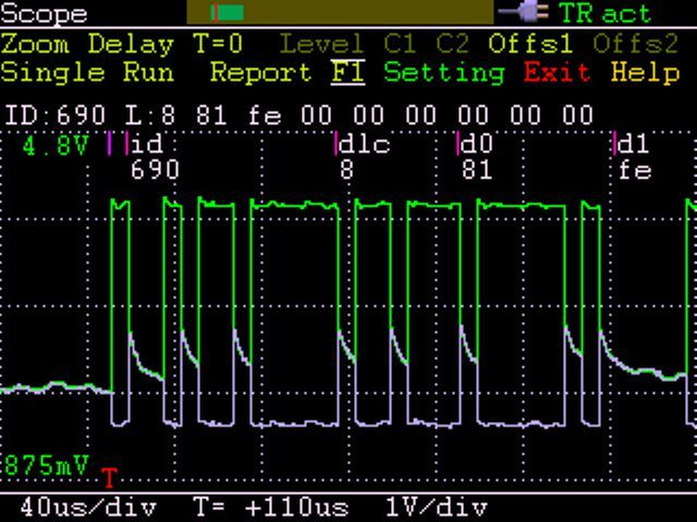 The CANopen Diag has an included 2 channel oscilloscope which can directly monitor the two CAN low and high signals.