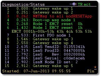 Die Ereignishistorie zeigt alle wichtigen Netzwerkereignisse, wie z. B. Startzeiten einzelner Knoten, erste PDO-Nutzung, Emergencies und Knotenfehler / Neustarts.